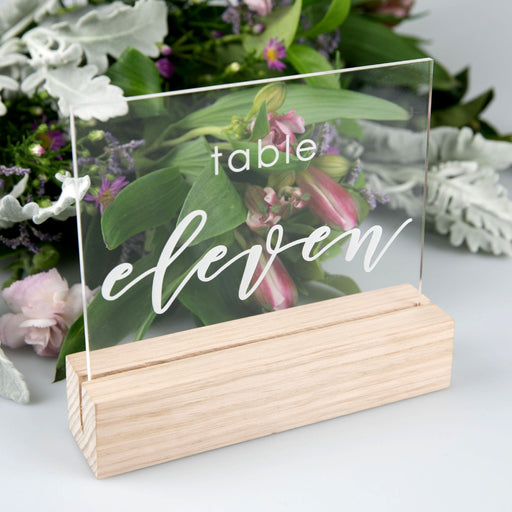 View full detailsEngraved Clear Acrylic Table Number with Wooden Base