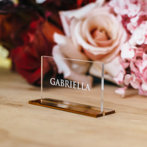 View full detailsEngraved Clear Acrylic Rectangle Wedding Placecards with Base Stand