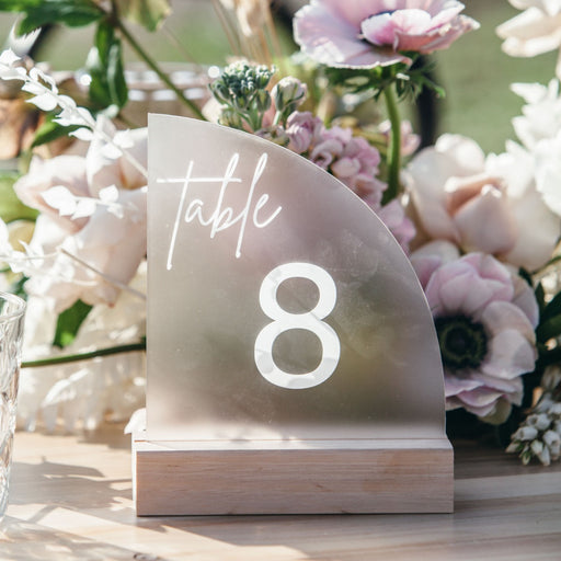 Put the finishing touches on your wedding table decorations with a beautiful Engraved Frosted Acrylic Sail Table Number with a Wooden Base. The 3mm...