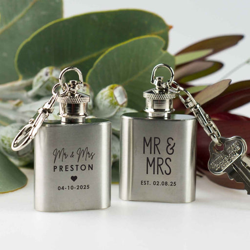 View full detailsEngraved Silver Mini Hip Flask Keyring Wedding Favour