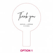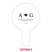 With a large choice of artwork options, this practical and beautiful fan is professionally engraved with a crisp white finish. It's not only ideal for hot weather during a ceremony and reception, it's a take-home gift that will be a favoured talking point among guests.