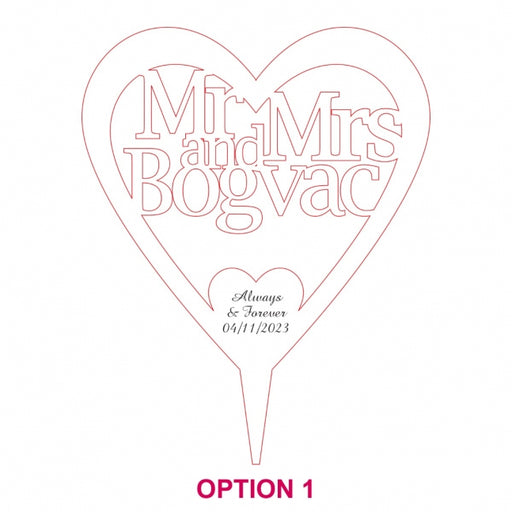 Personalised Mr & Mrs Heart Acrylic Cake Topper