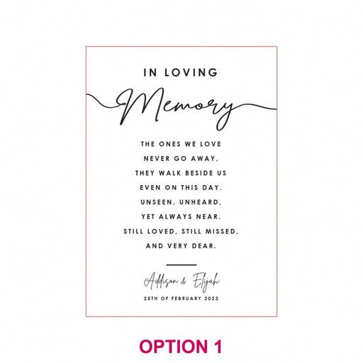 View full detailsIn Loving Memory A3 Printed Acrylic Wedding Sign