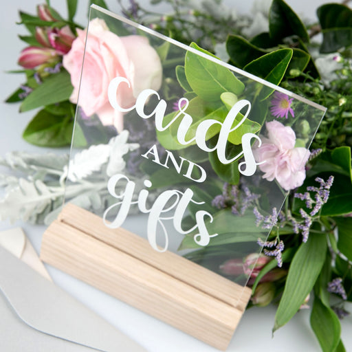View full detailsEngraved Clear Acrylic Gifts & Cards Sign with Wooden Base