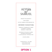 Probably the most versatile wedding invitations available, you can choose the colour of the invites, and simply adjust the engraving and artwork to match your theme and personality.
