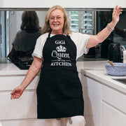 Kitchen rulers everywhere will reign supreme while crafting culinary creations wearing an apron emblazoned with their queen status and individual name.